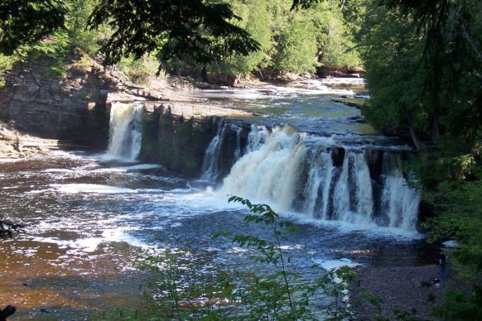Manabezho Falls in the Porcupine Mountains, photo by Gittinsj