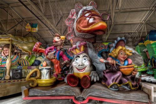 The Michigan Picture Project had a great photo feature last year on America’s Thanksgiving Day Parade (music & animated clown warning), held every year in Detroit that lifts the curtain with a stunning selection of HDR images of the floats in the warehouse. On Parade in Waiting they write: