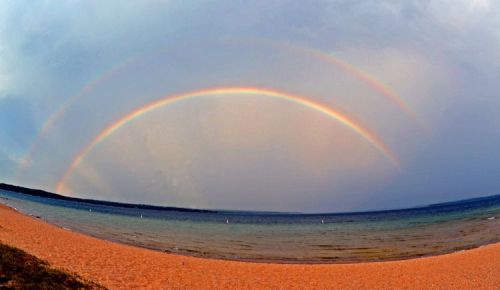 Rainbow Wheel over Lake Charlevoix, photo by Julie Christiansen