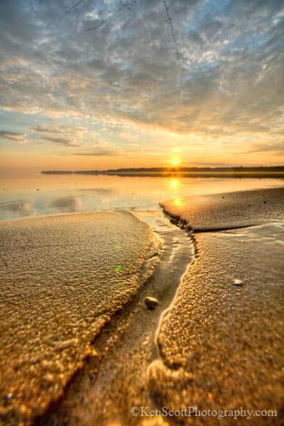Below is another shot from the same morning – Suttons Bay Sunrise … morning findings  featuring a formation of geese at the very top!