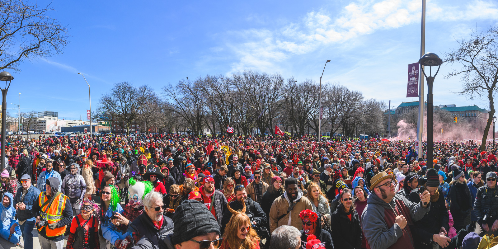 11:30 a.m.+ Music starts as the crowd gathers at our Community Stage, located at the intersection of Canfield and Second. 1 p.m. Should the legendary Nain Rouge appear, we will show hope prevails in the city that rises from the ashes. Bring your sense of Detroit pride, positivity, and sense of humor. The opening ceremonies conclude with the Nain leading a procession down to the Masonic Temple around 1:30 p.m.; we don’t chase the Nain! You are the parade, so come with a pan on your head or in full regalia. Bring a washboard and jug band (EDITOR: even I daresay an Honest 2 God Jug Band). Wear a costume. Build a human-powered float. Put on a mask, cover your body in biodegradable glitter and sustainably harvested feathers– whatever it takes.
