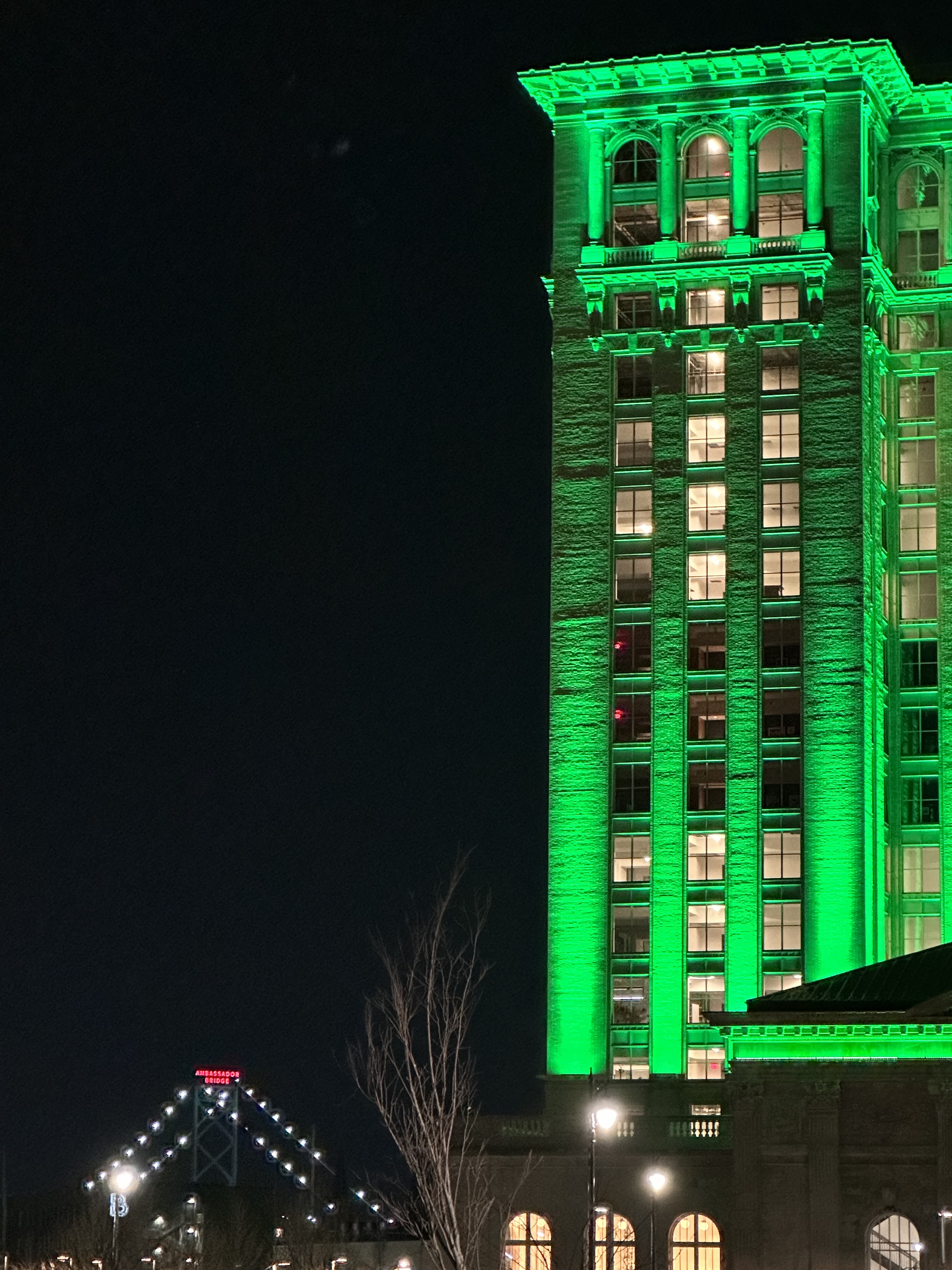 Chris shared a perfect photo for a roundup of recent Detroit news saying: “Both projects broke ground in 2020. The Hudson’s site is now Detroit’s second tallest building, while the Gordie Howe Bridge is the longest cable-stayed bridge in North America. Also lit up is the Ambassador Bridge which recently reached its 100 year anniversary.” (the Ambassador is in the foreground with the string of lights).