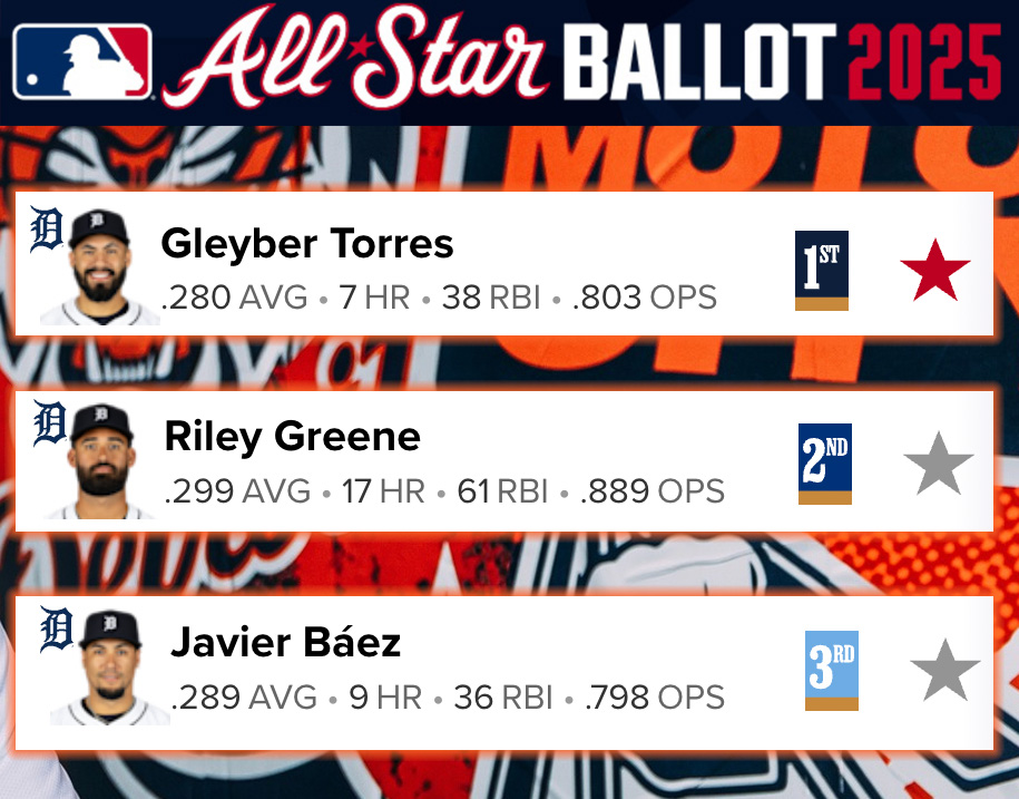 You have until noon today (Thursday, June 26) to submit your vote for the first round of voting for the MLB All Star Game. With a record of 50-31, the Detroit Tigers are tied with defending champions the Los Angeles Dodgers for the best record in baseball.