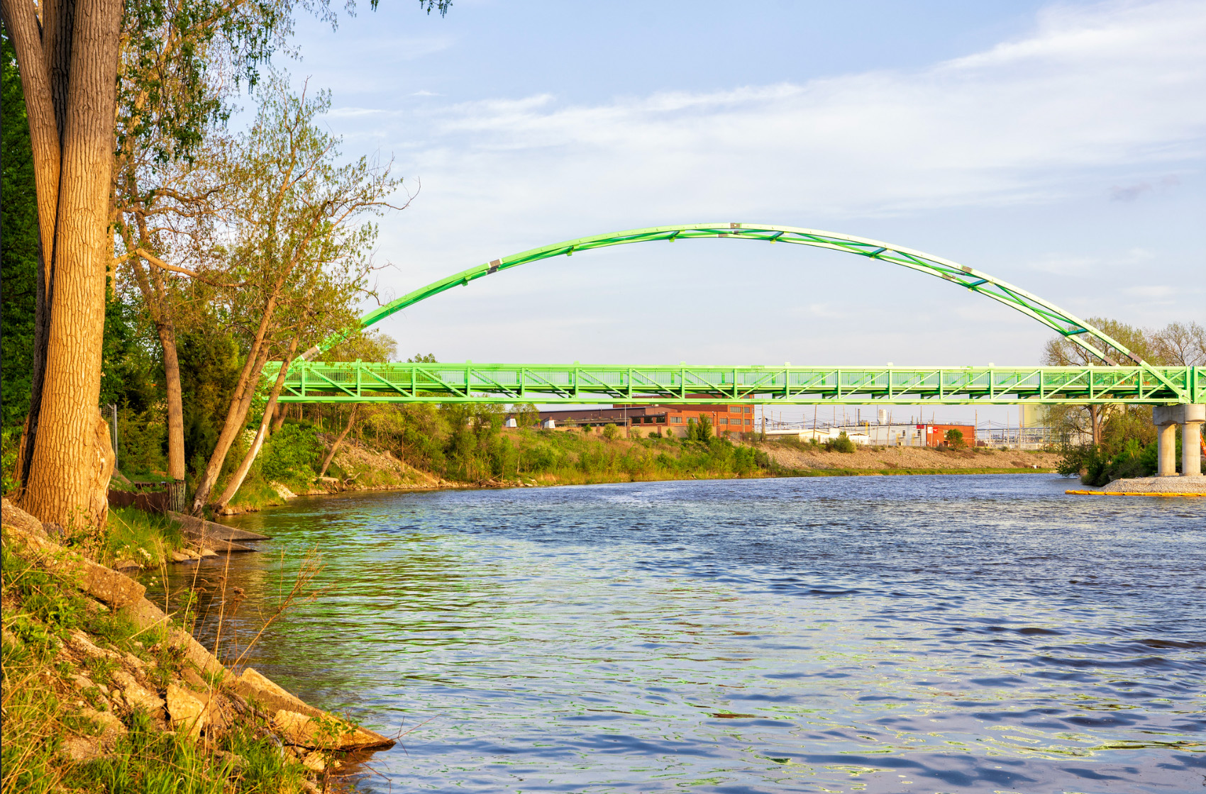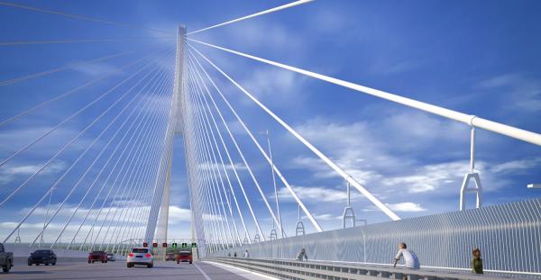 The Gordie Howe Bridge multi-use path will be one lane and will accommodate two-way pedestrian and cyclist traffic. It will be 1.5 miles in length and 11.8 feet wide. The multi-use path will be toll-free & connect to local road and trail networks. In Windsor, there will be connections to the Broadway Street Multi-Path and the Trans Canada Trail. In Detroit, there will be linkages to the Great Lakes Way which provides water & land routes from Lake Erie to Lake Huron and Iron Belle Trail that runs all the way to the far western corner of the Upper Peninsula!