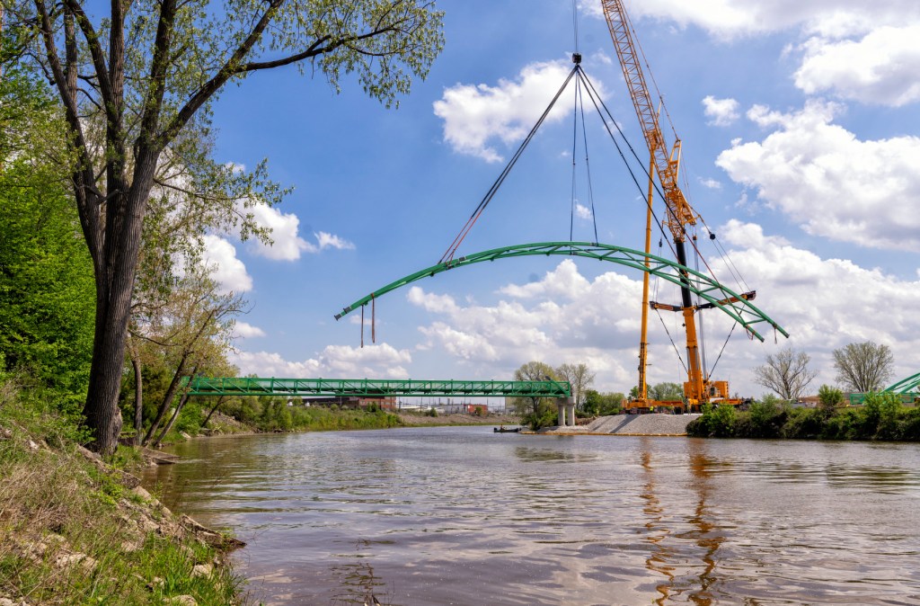 Last week the Gordie Howe International Bridge shared that the Canadian and US flags have found their permanent home at center of the bridge deck, adding “Soon you’ll be able to see the flags for yourself from the multi-use path as you walk or bike across the bridge.” Bike to Canada you say?? Beauty!!