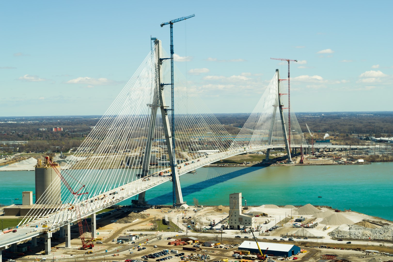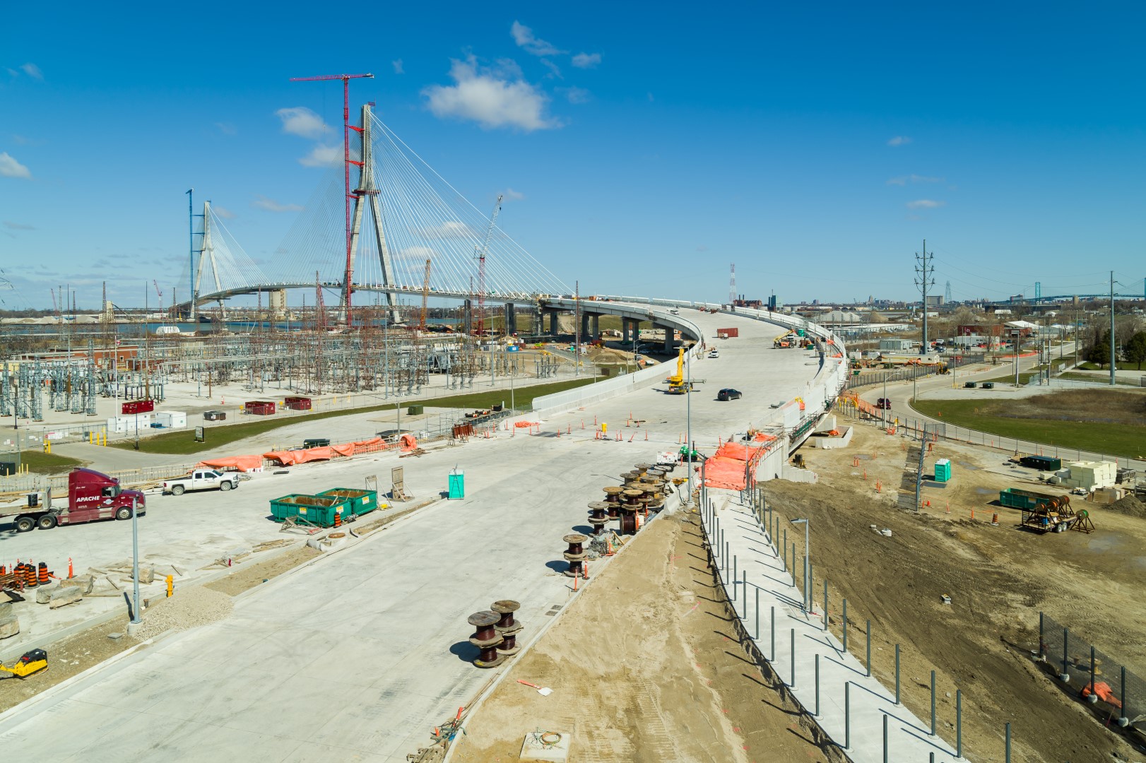 I read a news story the other day that says they will soon be testing the bridge lights & thought it would be a good time to check in on this incredible structure Canada is spearheading. The project remains on track for a fall 2025 opening, and when complete the Gordie How Bridge will be the biggest land port of entry between Canada and the U.S. with 130 acres, 11 structures, 16 toll lanes, and 24 primary inspection lanes on the Canadian side and 167 acres, 13 structures, and 36 primary inspection lanes on the US side.