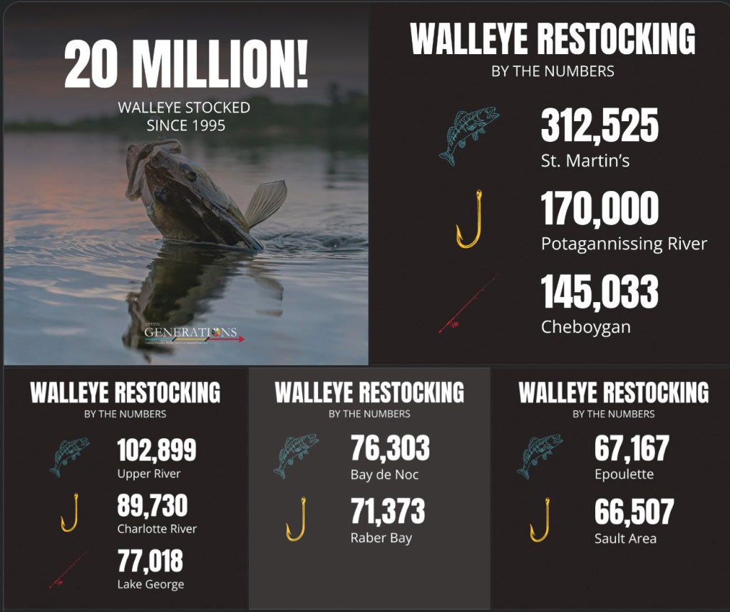 This year we recorded our 20 MILLIONTH walleye stocked since our walleye hatchery program began in 1995! Last month we are very proud to have released more than 1 million walleye fingerlings into Northern Michigan waters. These fish contribute to a sustainable fishery while eventually providing meals for families and recreation for fishers.
