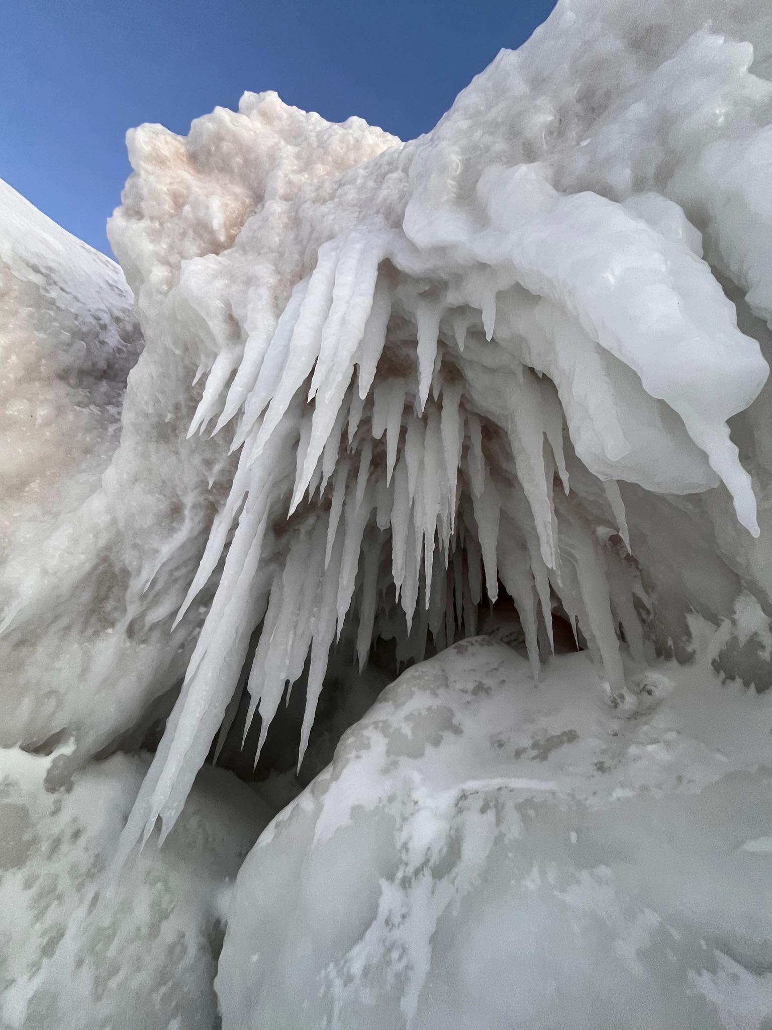 This rare winter phenomenon was captured in the Fruit Ridge area of Kent County, Michigan when freezing rain coated apples still hanging on the trees. The fruit eventually fell away, leaving behind these wild, hollow ice apples ❄️ Moments like this are uncommon, these photos were taken several years ago during just the right conditions 🧊🍎