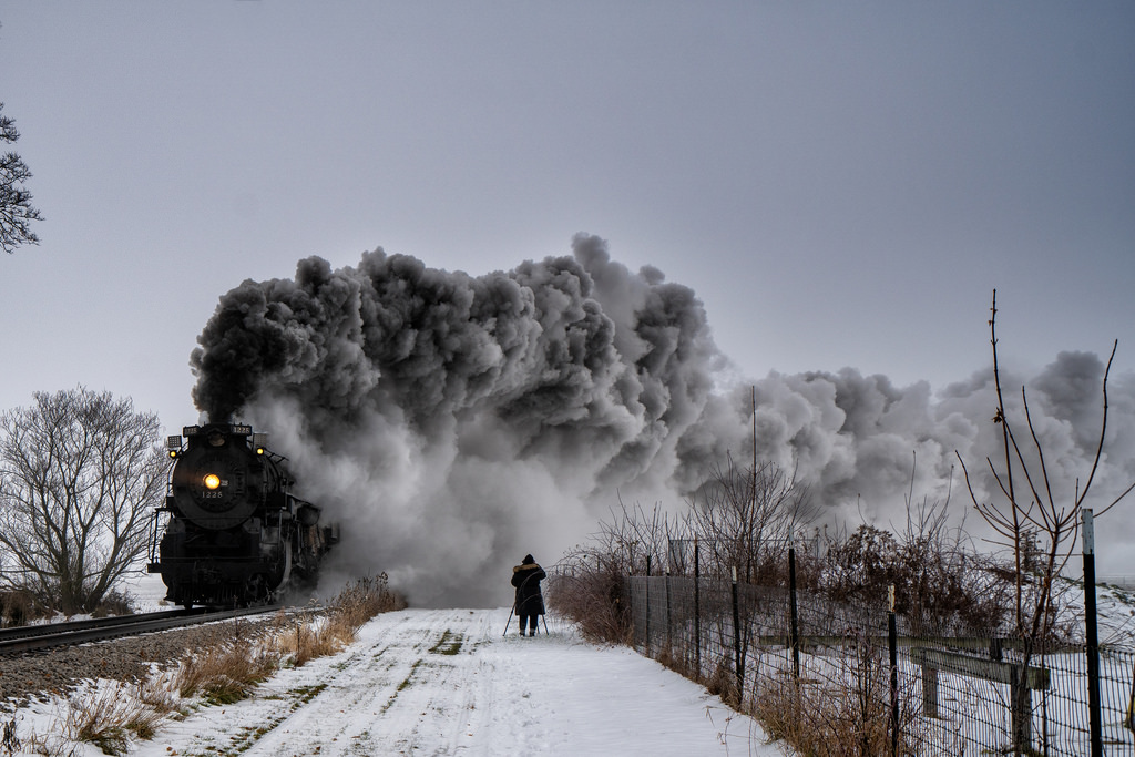 Here’s a few more shots by Charles of Pere Marquette 1225 from this year along with one of a photographer getting the shot that I shared back in 2018. For sure head over to Flickr to check out more in his Steam Engine, Railroad Photos gallery.