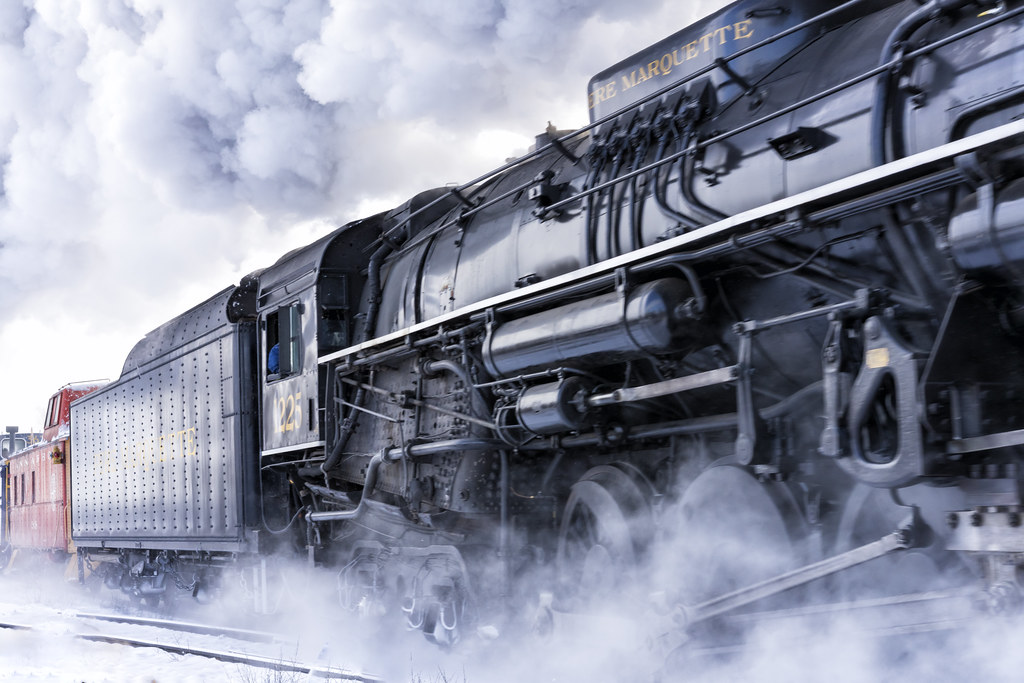 The steam locomotive Pere Marquette 1225 was first used by the Pere Marquette Railway to transport products between Detroit, Toledo, Flint, Saginaw, Grand Rapids and Chicago for a decade before being retired in 1951 when the Railway merged with Chesapeake and Ohio Railway who favored diesel locomotives. It was then given to a reluctant Michigan State University where it sat for 25 years. Spartan Newsroom explains how Pere Marquette 1225 returned to service & became the inspiration for beloved children’s book The Polar Express:
